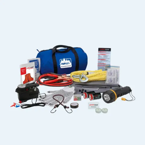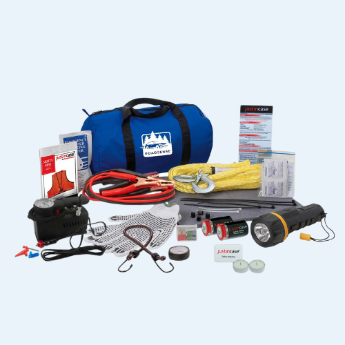 For total peace of mind. Includes everything from the Roadside Ready Kit, plus a portable tire inflator and an emergency poncho.